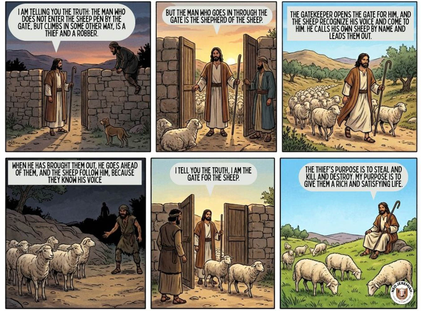 In John 10:1-10, Jesus is depicted as a Shepherd and Doorkeeper, two unitedly inseparable roles. In the cultural setting, the doorkeeper is the illustration of the shepherd who sits in the entrance of the “three season sheep pen,” it is a simple stone or brush enclosure used during spring, summer, and fall. Since the “three season sheep pen” had no physical door, the shepherd became the doorkeeper, and he could determine who passed into and out of the pen. The task of the shepherd was to keep the sheep in the pen, especially in the evening and at night. Moreover, the sheep knew and trusted their owner. When the stranger called the sheep, they moved away from the stranger. In this context, Jesus illustrated the difference between the bad and good shepherd so that his listeners would recognize him as the Good Shepherd but they did not understand him.