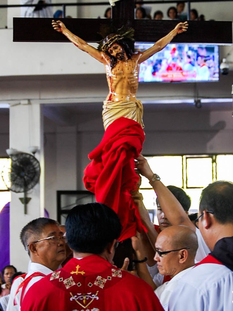 Sa pagdiriwang ng Biyernes Santo, taimtim na ginugunita ng Simbahan ang paghihirap at kamatayan ni Hesukristo. Nagsisimula ang liturhiya sa katahimikan, kung saan ang pari ay humihiga nang patirapa sa harap ng dambana, isang tanda ng pagpapakubaba, pagluluksa, at pakikiisa sa sakripisyo ni Kristo. Sa sandaling ito, ang buong sambayanan ay nananatiling tahimik, nagdarasal, at nagmumuni sa lalim ng pag-ibig ng Diyos na inihayag sa krus.